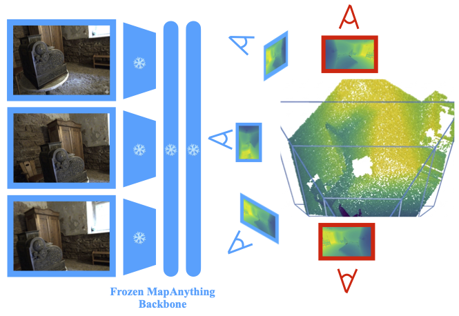 Extending 2.5D feed-forward geometry predictors to "2.6D" by replacing per-pixel depth supervision with differentiable 3D Gaussian splatting, enabling supervision from novel views.
